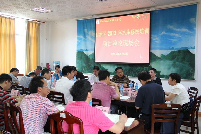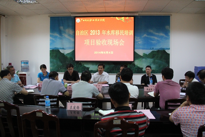 学院培训部讯 6月4日下午,自治区2013年水库移民培训项目验收会在学院第一行政办公楼五楼会议室召开。自治区水库移民工作管理局培训处处长覃革,市委副秘书长、学院党委书记韦伟松,市水库移民工作管理局局长罗光勤,自治区水库移民工作管理局监察室副主任朱雄伟,计财处调研员、副处长谌肇春,培训处副处长李海燕,学院副院长冯忠伟及相关部门负责同志出席或参加验收会。