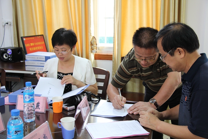在汇报会上,以覃革为组长的验收专家组通过查阅档案资料、查看实训场地以及召开座谈会等方式对我院2013年水库移民培训工作进行现场验收。