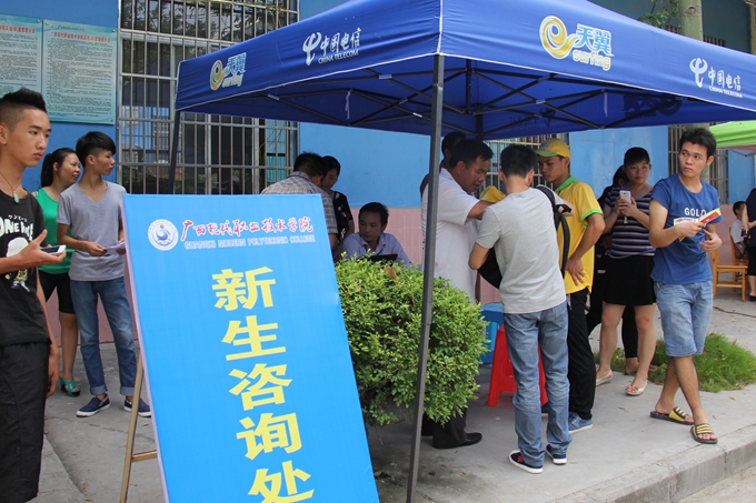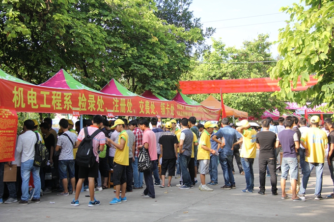 学院党委宣传部讯 年年桃李,岁岁芬芳。2012年以来,广西现代职业技术学院以提高学生和社会满意度为目标,实施内涵建设十大工程系列改革,学院各项工作逐年上档进位。今年新生录取第一轮补录就已录满,录取分数线比去年高出60分,录取新生达3000人。学院新生入学人数年年攀升,今年新生入学火爆场面更胜往年。