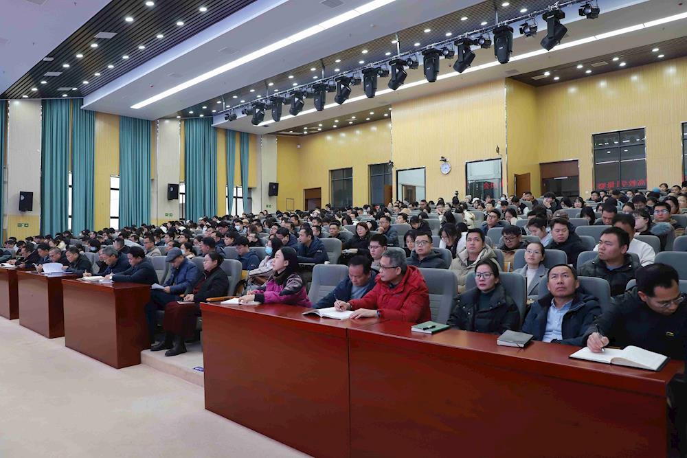 元月10日下午,我校在综合楼一、二楼报告厅召开深化课堂教学改革提高教学质量暨推进产教融合校企合作动员会。全体校领导、教职工参加会议。会议由梁朝益副校长主持。