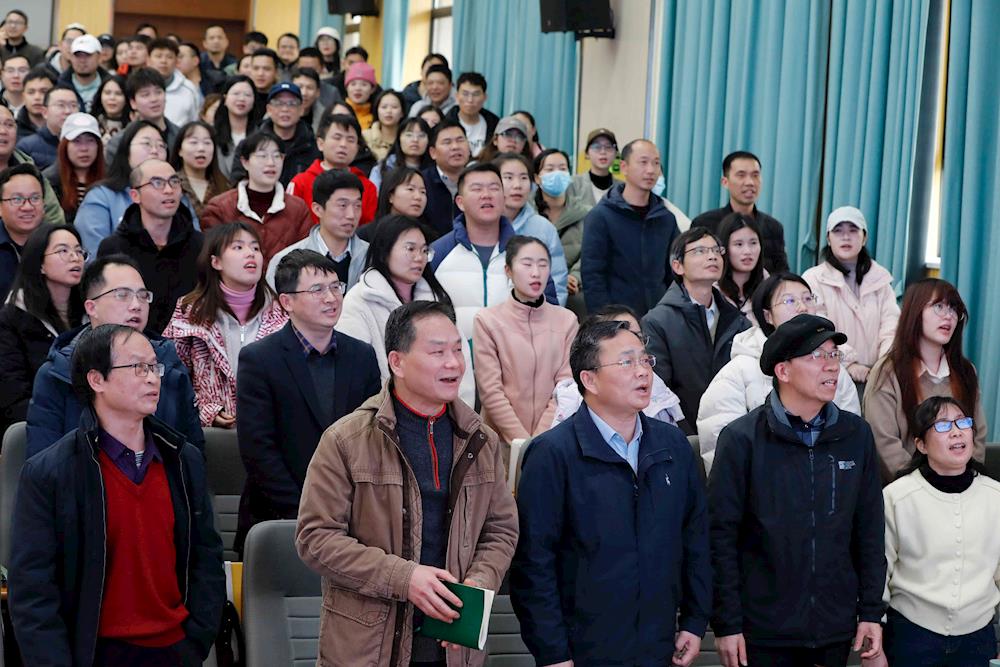 会上全体教职工合唱山歌