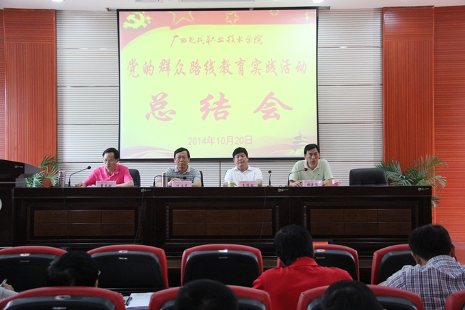 学院党委宣传部讯 10月20日上午,学院在第二学术报告厅召开党的群众路线教育实践活动总结会。市委副秘书长、学院党委书记韦伟松作总结发言。河池市第一督导组副组长杨进伟参加会议并讲话。学院全体中层以上领导干部、全体党员参加会议。大会由学院纪委书记覃志航主持。