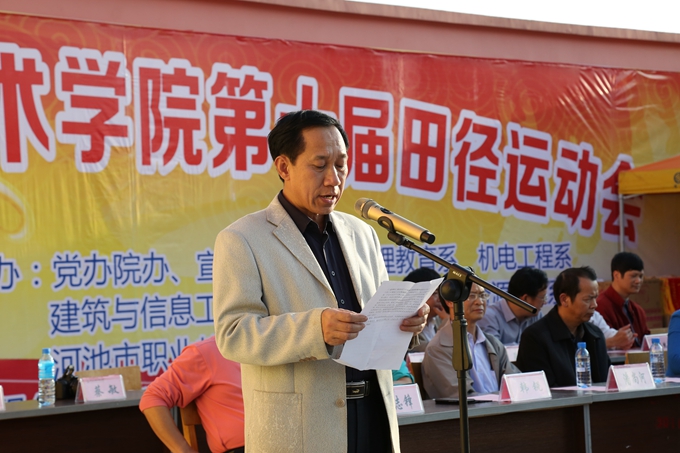 副院长韦胜东致闭幕辞,他代表运动会组委会向取得优异成绩的单位、团体和个人表示诚挚的祝贺,向全体工作人员、所有参与本次赛事的师生表示衷心的感谢。韦胜东指出,本届运动会的举行,既是对学院田径运动水平的一次全面检阅,也是全院师生精神风貌和综合素质的一次集中展示。全体运动员表现出了良好的体育道德风尚,展现了可贵的顽强拼搏精神,赛出了风格、赛出了水平、赛出了友谊。本届运动会组织有力、秩序良好、热烈精彩、成绩斐然,取得了比赛成绩和精神文明双丰收。希望大家把赛场上表现出来的坚忍不拔的意志,顽强拼搏的作风和团结互助的精神继续保持发扬下去,投入到学习和工作中,秉承“厚德强能,奋发有为”的校训,发扬“团结包容,自强不息,求实创新,勇争一流”的学院精神,以昂扬的斗志、崭新的姿态和饱满的激情投身于学院十大工程建设,为开创广西现代职业技术学院更加美好的明天而努力奋斗!