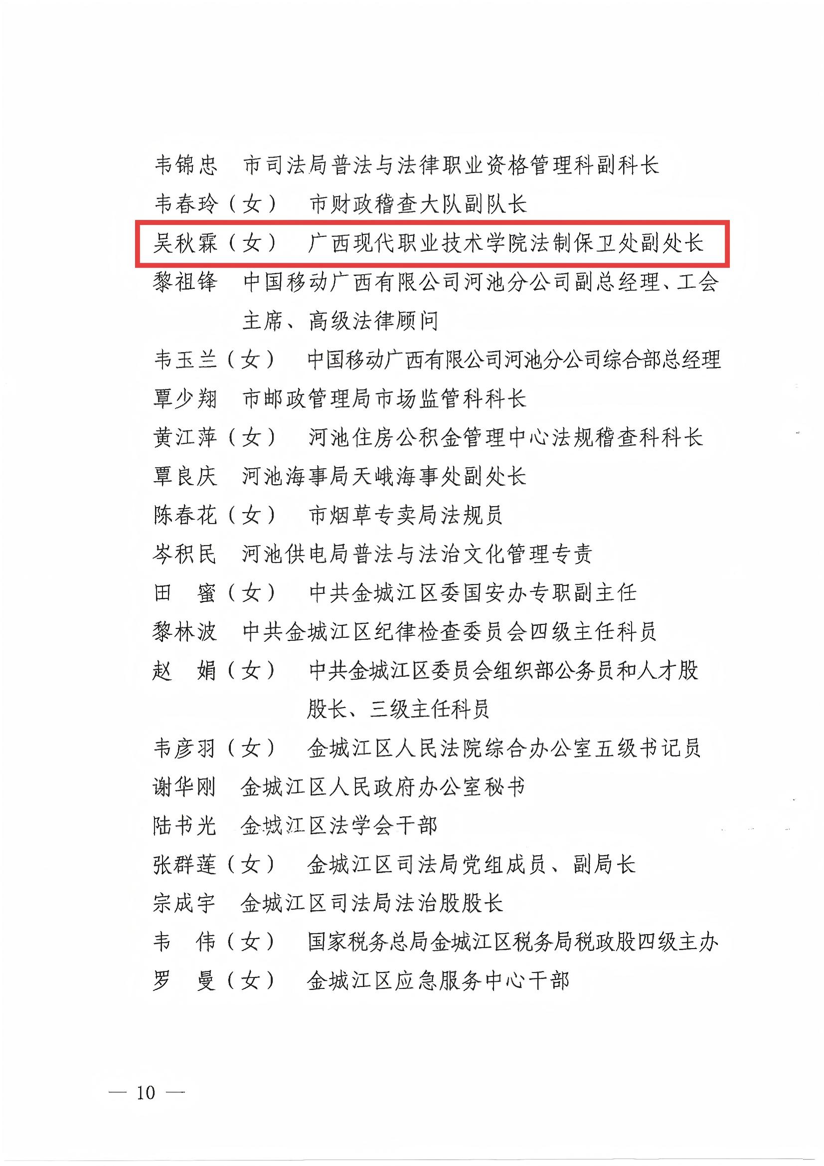 喜讯!广西现代职院荣获河池市“八五”普法中期“先进集体与个人”表彰
