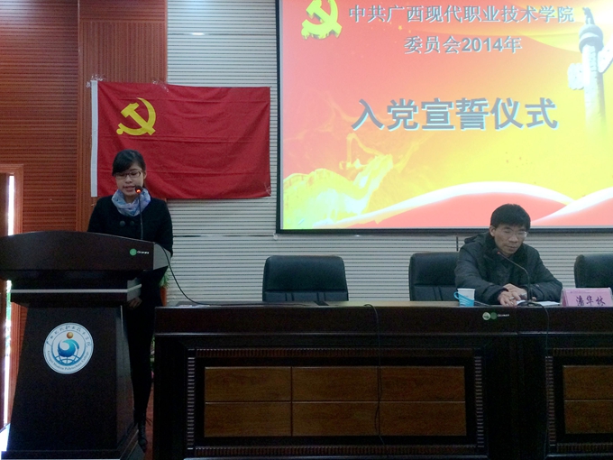 党委宣传部讯 12月29日下午,我院在第二学术报告厅召开2014年新党员入党宣誓仪式,学院纪委书记覃志航、党委组织部部长潘华林,各系党总支书记出席会议,72 名预备党员及相关老师参加此次大会。会议由潘华林主持。