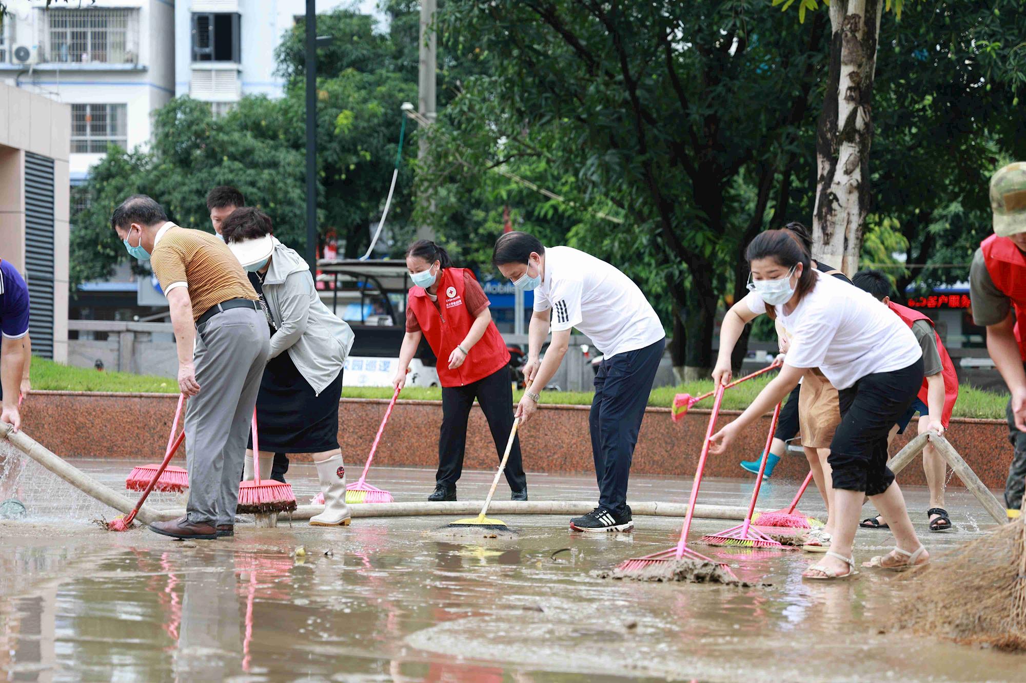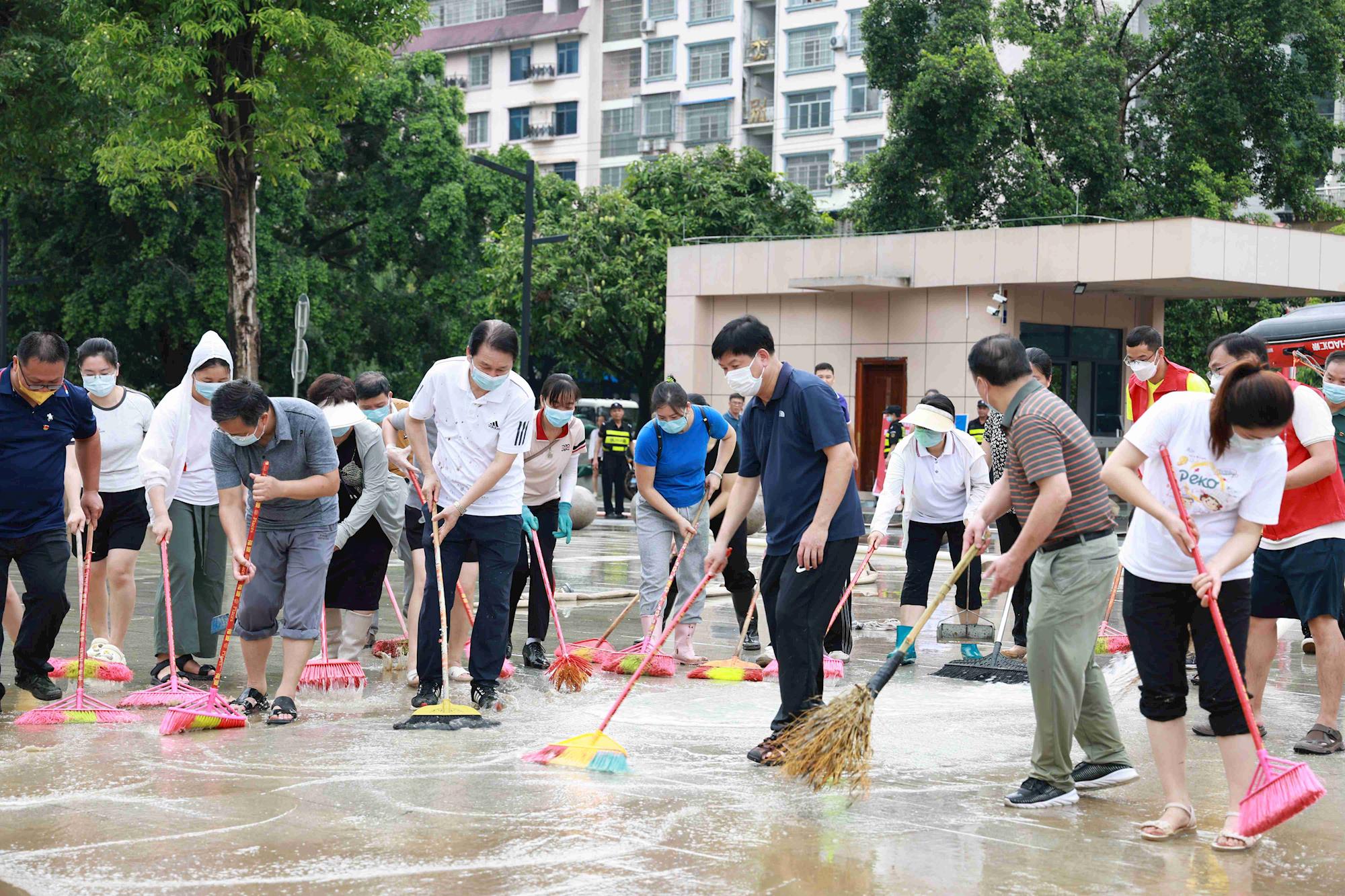6月22日凌晨3时,积水开始逐渐退去,但灾后的校园一片狼藉。灾后恢复工作是当前学校工作的重中之重。上午8时,学校领导、全体中层正职领导在综合楼一楼前召开紧急会议,专题部署灾后恢复工作的相关事宜。紧接着,学校领导带领广大教职工和学生志愿者一同投入工作,清理淤泥、转移废弃物。以实际行动鼓舞士气,推动恢复工作加速进行。