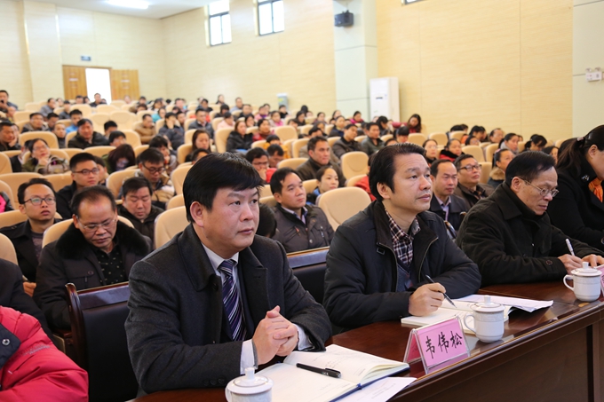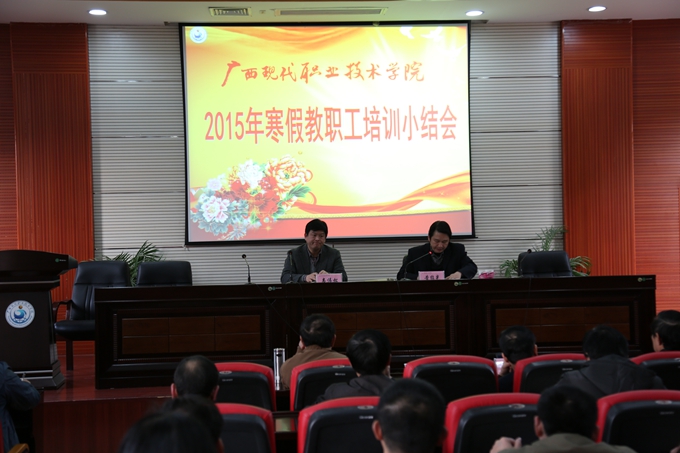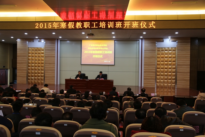 学院党委宣传部讯 1月22日,为期7天的学院2015年教职工寒假集体培训班在我院第二学术报告厅圆满落下帷幕。市委副秘书长、学院党委书记韦伟松,学院院长黄绍光,纪委书记覃志航,副院长冯忠伟、韦胜东以及学院教职工300余人全程参加了学习培训活动。