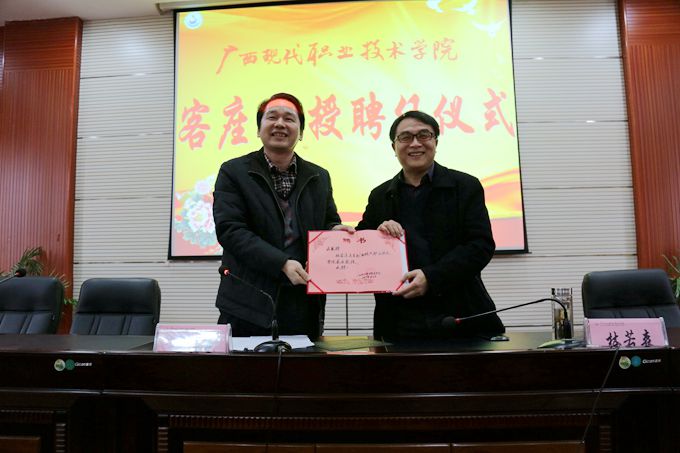 学院党委宣传部讯 近日,我院新聘请了一批国内著名职业教育专家学者作为学院客座教授。市委副秘书长、学院党委书记韦伟松,学院院长黄绍光分别在聘任仪式上为新聘请的马树超等7位客座教授授予聘书。