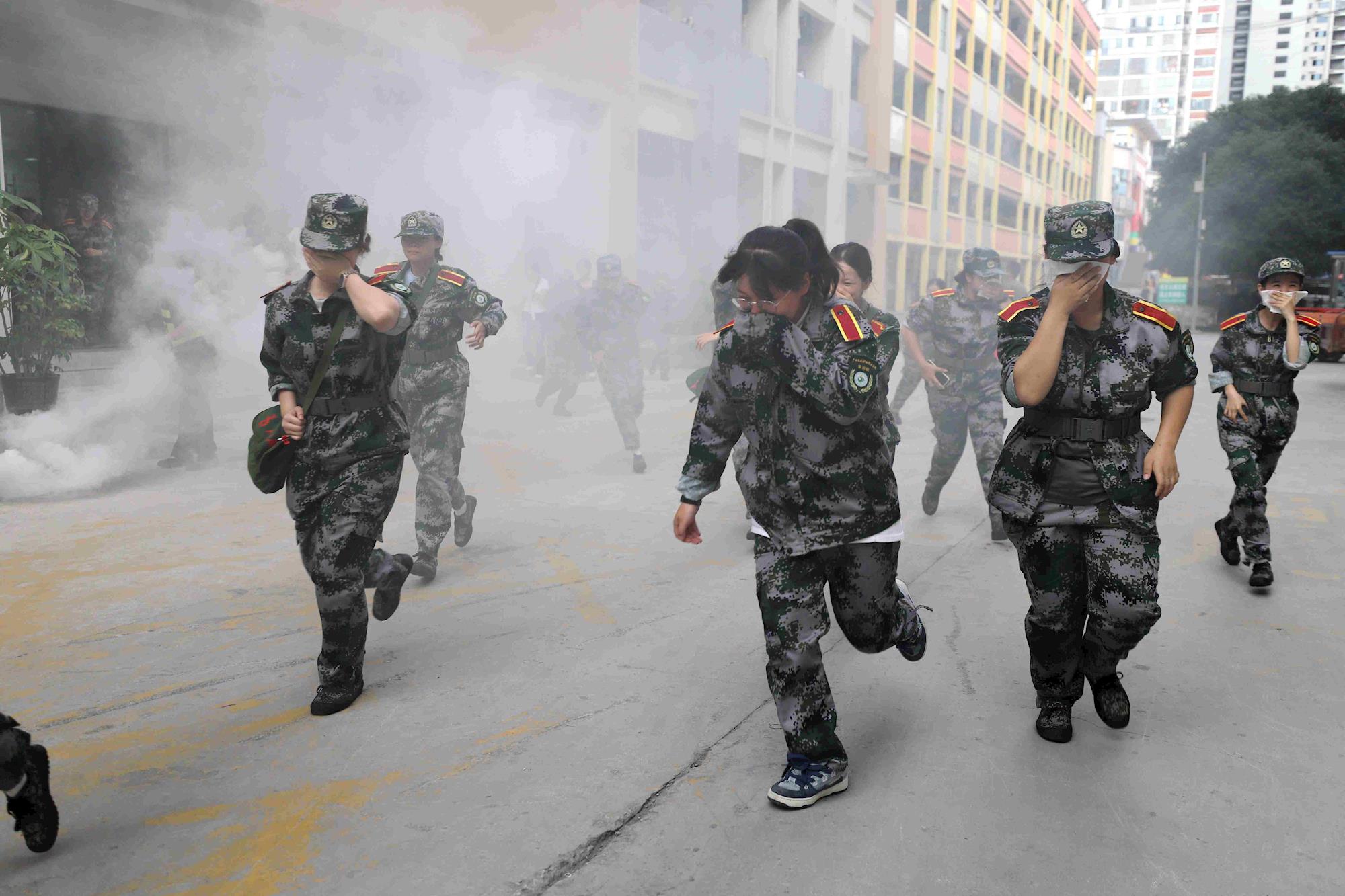 17点30分,伴随着警报信号响起,所有参演人员在疏散引导人员指挥下,弯腰、护头、捂住口鼻,沿指定疏散路线快速、有序撤离至安全区域。共用时7分05秒,9600多名学生安全完成撤离。疏散过程中全体人员不慌不乱,撤离迅速,动作规范,基本达到了本次演练活动的目的。