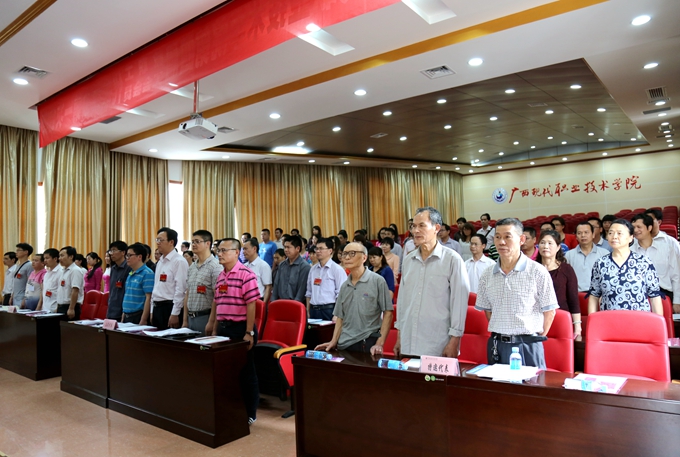 学院党委宣传部讯 4月2日至4月3日,我院第四届教职工(工会会员)代表大会第一次会议在学院第二学术报告厅举行并圆满结束。市委副秘书长、学院党委书记韦伟松致开幕词,院长黄绍光致闭幕词。纪委书记覃志航,副院长冯忠伟、韦胜东出席大会,大会正式代表、列席代表和特邀代表共106人参加了会议。