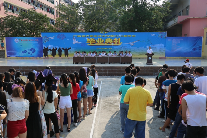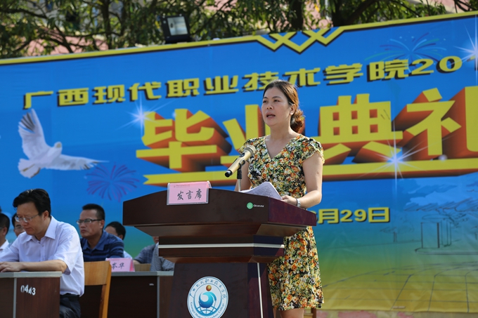 6月29日上午,学院2015届学生毕业典礼在文体广场隆重举行。市委副秘书长、学院党委书记韦伟松,院长黄绍光,副院长冯忠伟等院领导出席毕业典礼,并为毕业生和优秀毕业生颁发毕业证书和荣誉证书。毕业典礼由副院长韦胜东主持。各系、部分部门负责人,毕业班班主任、辅导员、教师代表、毕业生代表以及部分在校生参加了毕业典礼。