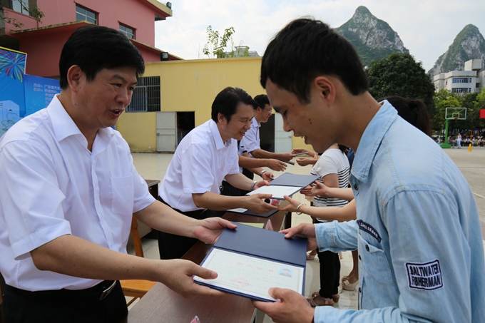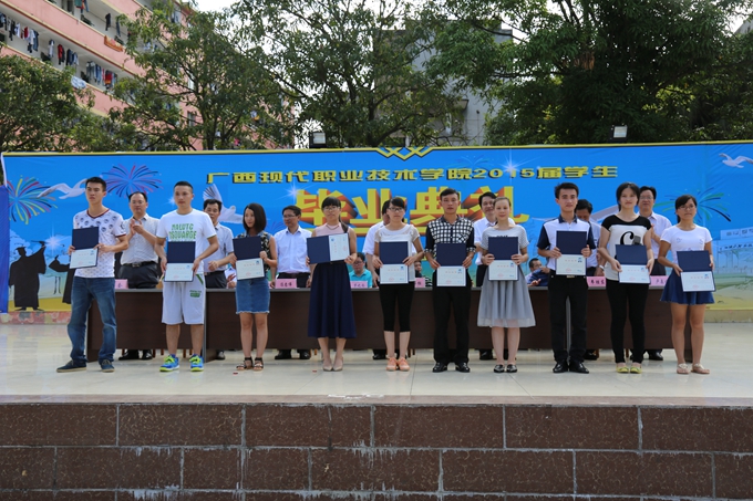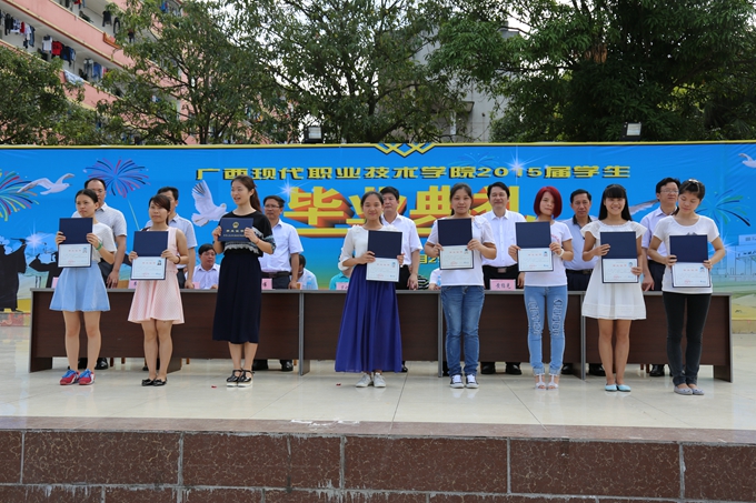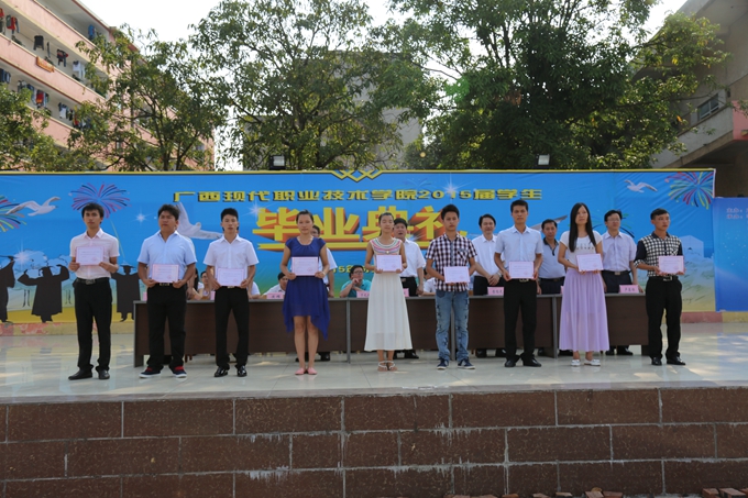 典礼上,冯忠伟首先宣读了《关于表彰2015届自治区级优秀毕业生的决定》,韦伟松、黄绍光等学院领导分别为荣获表彰的优秀毕业生、毕业生代表颁发荣誉证书和毕业证书。
