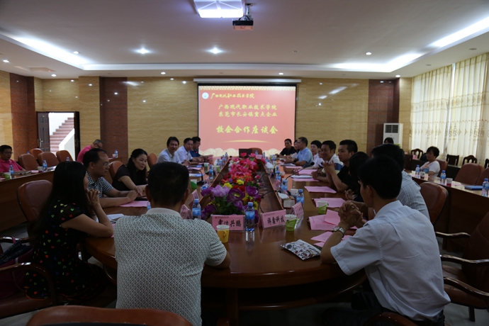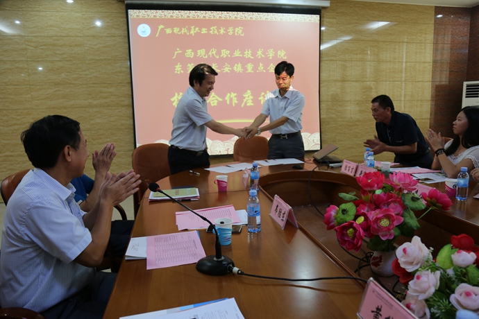 考察团先在黄院长的陪同下,依次参观了我院校园环境、学前实训楼、汽车实训室等,然后在学院图书馆会议室召开座谈会。座谈会由韦胜东副院长主持,考察团首先观看了我院发展的专题纪录片。接着,黄绍光院长在会上向考察团介绍了学院的办学理念、人才培养、学科建设、培养模式等。东莞市长安镇重点企业领导在座谈会上也一一介绍了各自企业的用工信息和用工需求,渴求在我院招到毕业生。
