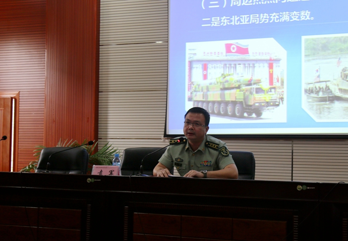 最后,蓝尉煌主任为师生们作国防形势教育总结报告。他的报告视野开阔、内容丰富、主题鲜明、论述精辟,结合实际紧密、分析讲解透彻,具有很强的思想性、理论性。对于我们深入学习习近平总书记系列重要讲话精神,深刻领会习近平总书记治党、治国、治军的战略思想,正确理解国内国际安全形势,更好地推动河池振兴发展,具有十分重要的意义。