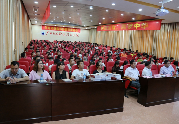 河池市纪念中国人民抗日战争暨世界反法西斯战争胜利70周年国防形势教育报告会在我院隆重举行