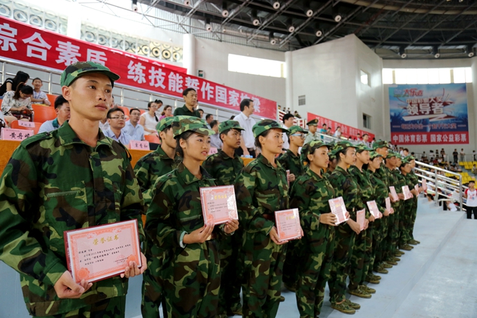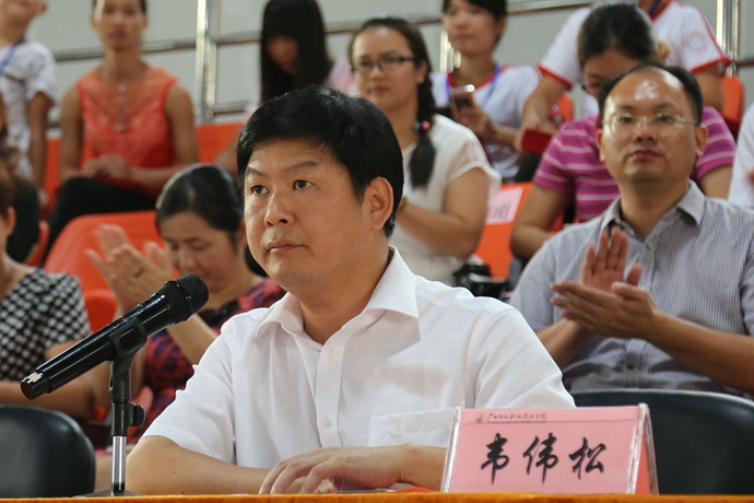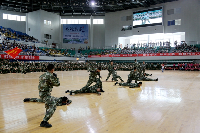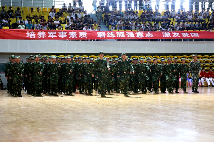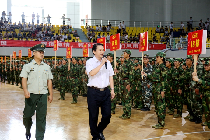 最后,韦伟松书记作军训总结讲话。韦书记强调,通过军训,同学们不仅体验了军营生活,学习了国防知识,增强了国防观念,激发了爱国热情,而且还培养了国家安全意识,坚定了修身立德、成长成才、报效祖国的信心与决心。通过军训,同学们掌握了一定的军事知识和技能,学到了军人服从指挥、令行禁止,纪律严明的好传统;学到了军人顽强拼搏,敢于吃苦,不怕困难,艰苦朴素的好品格;学到了军人不怕牺牲、精忠报国的好思想;也学到了军人团结协作,珍惜荣誉的好作风。通过军训,同学们普遍增强了体质,磨练了意志,锻炼了品质,培养了精神,学会了从思考中确立自我,从追求中获得力量,从计划中把握时间,用纪律来约束自己,用修养来规范行为。韦书记对参训同学们提出三点希望:一是希望同学们在今后的学习生活中,能保持、巩固和发扬在军训中用辛勤的汗水换来的好思想、好作风、好品质,把军训成果转化成刻苦学习和积极生活的动力。二是希望同学们继续发扬脚踏实地、百折不挠、永不服输的精神,敢于面对困难和挫折,勇于接受挑战,按照习近平总书记在中国人民抗日战争暨世界反法西斯战争胜利70周年纪念大会上的讲话要求,进一步增强国防观念,传承和弘扬伟大抗战精神,弘扬爱国主义精神,践行社会主义核心价值观。三是希望同学们继续巩固和发扬集体主义精神,学习上互相帮助、生活中互相关心,珍惜大学时光,秉承学院“厚德强能,奋发有为”的校训精神,努力学习理论知识,锻炼培养实践技能,做一个对国家和社会有用的人。