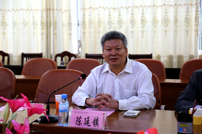 座谈会上,黄绍光首先向考察团一行介绍了我院目前的基本情况。在观看了学院宣传片后,陈廷镇表示,广西现代职业技术学院在短短的几年内,取得长足发展,实属不易,特别是学风、教风,都非常严谨、扎实,今天来到这里,看到了一些好思路、好做法、好经验,我们将认真研究,取长补短。其间,双方就当前高等职业教育的建设与发展、机电一体化专业建设等方面进行深入交流。