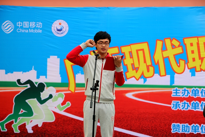 开幕式上,14营销2班梁剑盛同学以及体育部罗皓老师还分别代表运动员、裁判员进行宣誓。