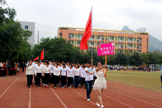 党委宣传部讯 12月9日下午,学院第十一届田径运动会在塑胶运动场隆重开幕。学院党委书记韦伟松出席开幕式并宣布开幕。学院院长黄绍光在开幕上致辞。纪委书记冉景峰,副院长韦胜东,工会主席覃志航,院长助理韦建军、杨奎、覃孜,以及各部门负责人,各系、河池职教中心分管学生的领导、赞助单位中国移动通信集团广西有限公司河池市金城江区分公司部门负责人参加开幕式。开幕式由团委书记李媛媛主持。
