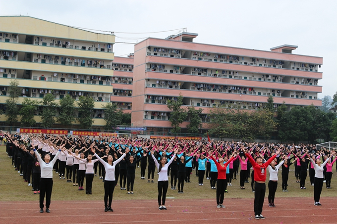 最后,精彩绝伦的团体操表演赛,将现场气氛推向高潮,同学们意气风发,精神抖擞,以整齐划一,铿锵有力的正能量表演,完美的体现出我院大学生朝气蓬勃、青春飞扬、健康向上的精神风貌。