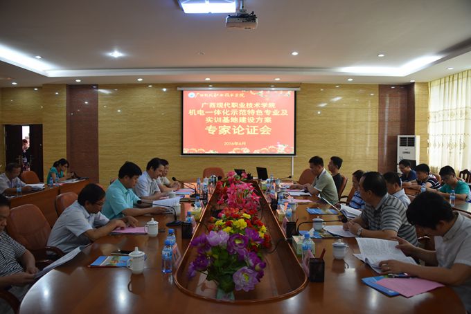 本站讯(宣传部 莫青青) 6月4日下午,我院在图书馆一楼会议室召开机电一体化示范特色专业及专业实训基地建设方案论证会。会议邀请了广西大学机械工程学院教授、博士生导师黄伟,南京工业职业技术学院机械工程学院院长王晓勇等区内外专家参加。学院党委书记韦伟松、学院院长黄绍光、副院长冯忠伟出席会议。学院相关职能部门负责人及机电工程系相关专业教师参加会议。会议由副院长冯忠伟主持。