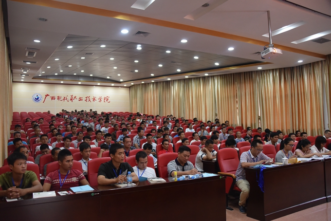 本站讯(宣传部 莫青青) 6月14日上午,我院在第二学术报告厅举行2016年第一期水库移民特种作业培训班开班典礼。来自南宁市、来宾市和贺州市的200多名库区移民学员参加此次培训。学院院长黄绍光,南宁市水库移民工作管理局培训科科长温钊,贺州市水库移民工作管理局信访科科长杨志军等出席开班典礼。仪式由学院工会主席覃志航主持。