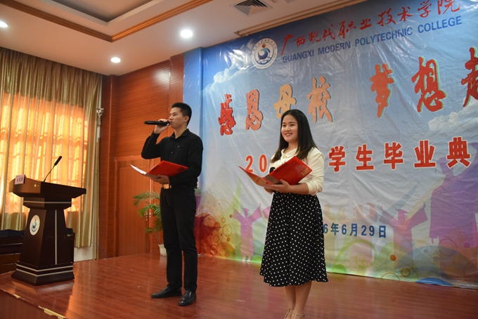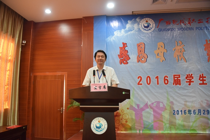 最后,黄绍光院长代表学院向圆满完成学业、即将踏上新征程的全体毕业生表示热烈祝贺和美好祝愿。他深情回忆了三年来同学们留在校园的青春足迹和成长进步的点点滴滴,对同学们为学院发展作出的贡献表示感谢。他希望全体毕业生继承广西现代职业技术学院人的优良传统,学以致用,奉献祖国,服务社会,做出一番事业;他勉励同学们要相信自己,学会自立,做一个乐观向上的人,做一个敢于追梦的人,做一个饮水思源、知恩图报、爱校荣校的人,努力在激扬青春、开拓人生、奉献社会的进程中书写无愧于时代的壮丽篇章。