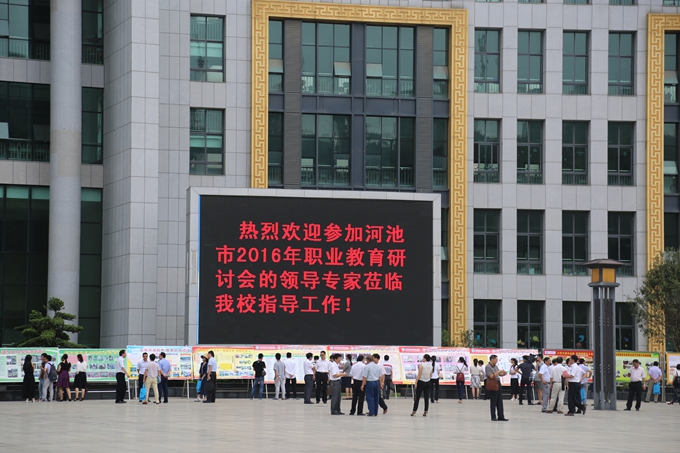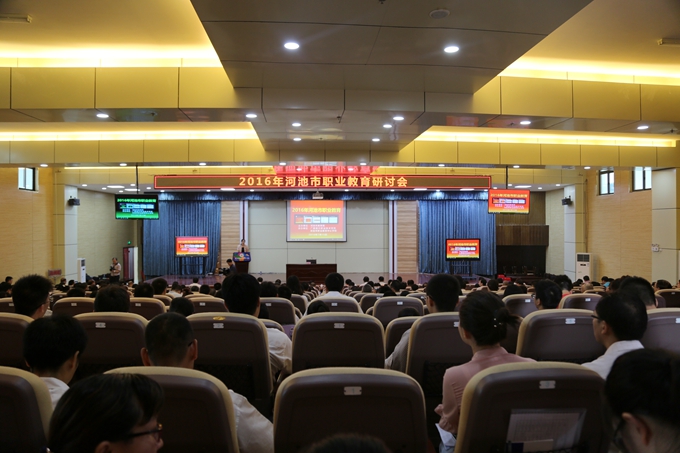 本站讯(宣传部 莫青青) 7月15日上午,河池市职业教育研讨会第一阶段会议在市职业教育中心学校厚德厅举行。自治区专家、市直相关部门、各县(市、区)教育局、职业院校和企业的领导及代表参加会议。学院党委书记、市职业教育中心学校校长韦伟松,学院院长黄绍光、市职业教育中心学校党委书记黄丹峻等两校领导出席会议。我院及市职业教育中心学校全体教职工参加会议。会议由市教育局副局长韦联克主持。