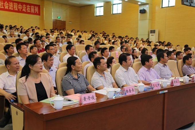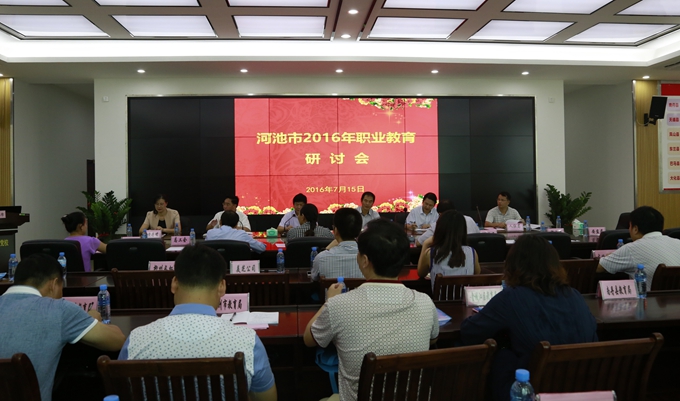 又讯 7月15日下午,河池市职业教育研讨会第二阶段会议在市委党校会议厅举行。自治区专家、市直相关部门、各县(市、区)教育局、职业院校和企业的领导及代表参加会议。学院党委书记、市职业教育中心学校校长韦伟松,学院院长黄绍光、市职业教育中心学校党委书记黄丹峻等两校领导出席会议。我院及市职业教育中心学校中层以上干部参加会议。会议由市教育局副局长韦联克主持。