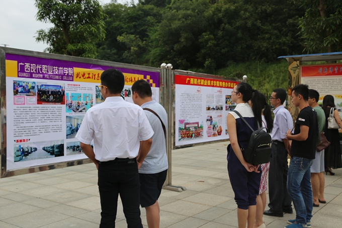 当天上午,与会领导及嘉宾还在市职业教育中心学校广场参观了职院校办学成果展示。