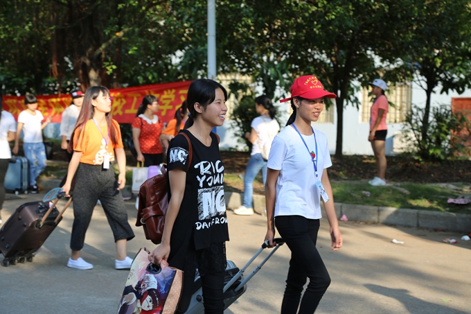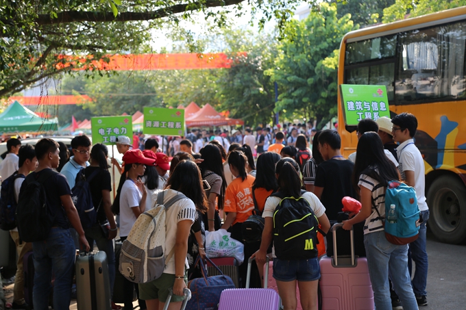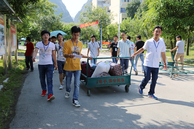 本站讯(宣传部 莫青青) 新学期、新征程、新未来,青春列车在广西现代职业技术学院再次启程。2016级新生的到来,使得秋意渐浓的校园焕发出更多勃勃生机与活力。为了做好今年的新生接待工作,学院领导多次研究讨论新生接待工作方案,学院党委书记韦伟松、院长黄绍光亲自组织部署和指挥协调,全程跟踪检查、指导各项接待工作,及时解决存在问题。全院师生员工更用心、更用情、更用力地投入到新生接待服务工作中,为的就是让每一位新生和家长满意。