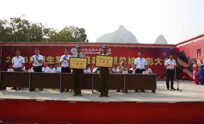 汇演结束后,学院学工处副处长黄仕珍宣读了2016级新生军训表彰情况并组织颁奖,承训方绿邦国防教育基地领导作讲话。