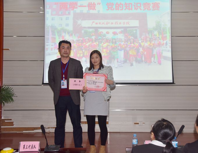 经过激烈角逐,资源工程系党总支代表队凭借在比赛中的从容不迫、反应敏捷,于高手如林的比赛现场脱颖而出,荣获一等奖;行政后勤党总支、教务学工党总支、电子电力工程系党总支代表队荣获二等奖;机电工程系党总支、经济管理系党总支、教育系党总支、建筑与信息工程系党总支代表队荣获三等奖。最后,学院党委副书记、副院长霍江华、副院长韦胜东、纪委书记冉景峰为获奖代表队选手颁奖。