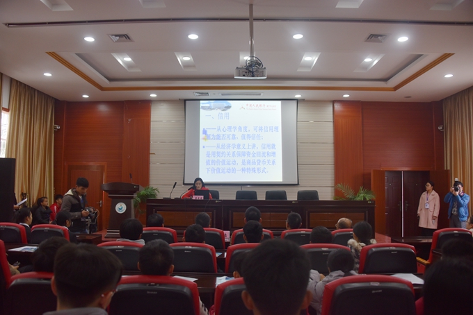 又讯,12月14日下午,人民银行南宁中心支行征信管理处处长梁薇薇在学院第二学术报告厅为我院250多名学生代表作诚信校园专题讲座。梁薇薇处长针对目前社会上的各类诚信问题作出了精彩的分析与讲解,并与同学们积极互动,解答同学们在校园生活中常遇到的校园借贷、电信诈骗等问题。