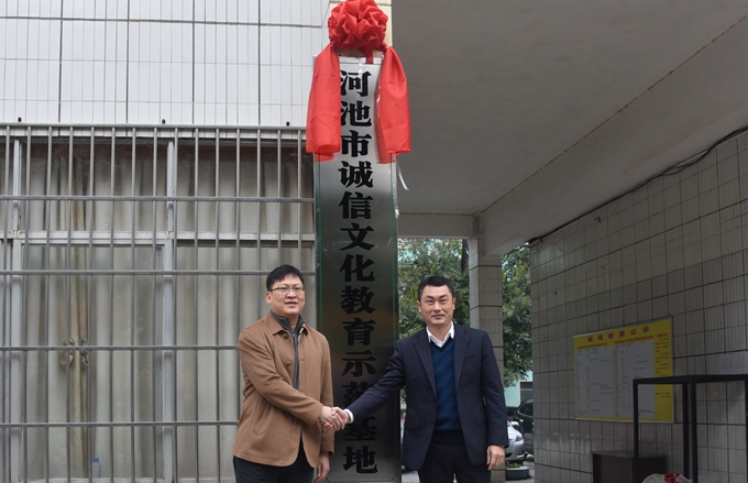 冼海钧指出,诚信文化建设是社会信用体系建设的重要内容,河池市诚信文化教育示范基地的启动旨在进一步落实全面依法治国的战略部署和推进“诚信文化进校园”工作深入开展。有利于推动诚信文化教育进驻校园,提高大学生诚信意识和诚信实践能力,推进全市社会信用体系建设和精神文明建设。他希望广西现代职业技术学院要积极营造诚信氛围,开展丰富多彩的校园诚信活动。最后,冼海钧为我院捐赠征信教育读本,并与学院党委副书记、副院长霍江华共同为河池市诚信文化教育示范基地揭牌。