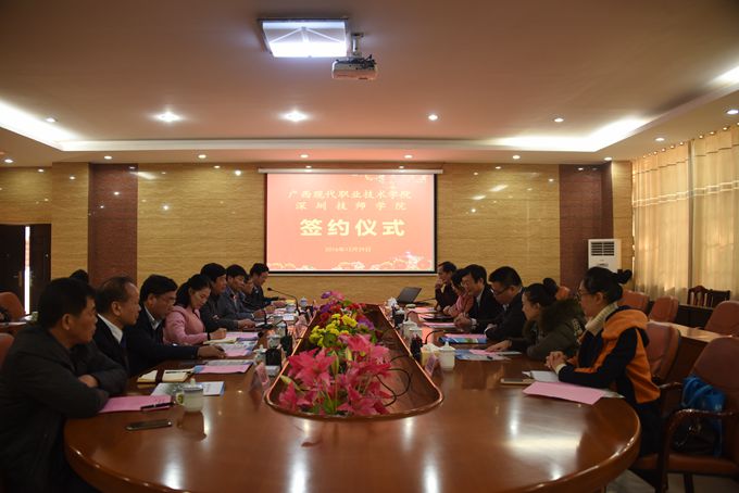 学院党委书记韦伟松代表学院与深圳技师学院签订了“校校合作”协议。