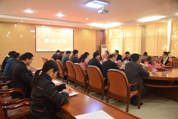 12月29日上午,深圳技师学院副院长王德一行5人到我院考察交流,并与我院举行“校校合作”签约仪式。学院党委书记韦伟松、广东省第二扶贫协作工作组农产品与产业协作部副部长黄信科、市教育局副局长韦联克、市人力资源社会保障局副局长范利群、市扶贫办副主任姚光明等领导出席签约仪式。学院院长助理、机电工程系主任韦建军,院长助理、教务科研处处长卢森焕以及各系部主任参加签约仪式。仪式由学院副院长冯忠伟主持。