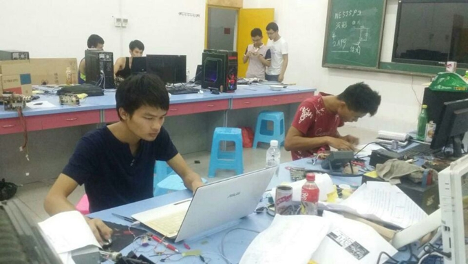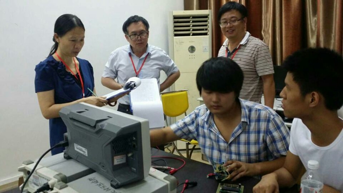 在学院领导的高度重视和系领导班子积极推动下,电子系3月份就积极组织学生参加培训选拔并安排相应的老师负责,针对竞赛要求制定一系列的培训计划并加强平常的训练。通过为电子协会开放实训室,开展第二实训课堂,聘请校外专家教授做专题报告等方式,不断提高同学们的技术技能和创新能力。通过第一阶段的严格选拔,最终有四组进入第二阶段的重点培训。为了能取得更好成绩,在为期20多天的强化训练中,系主要领导亲自下实训室指导,专业老师积极参与,同学们努力进取、开拓创新、不断突破自我。通过高强度的训练,学生技能得到很大的提升,为赢得比赛的胜利打下坚实基础。在决赛的四天三夜中,同学们夜以继日,通宵奋战,攻克一个个技术难关,在规定时间内完成参赛作品,取得了优异的成绩。