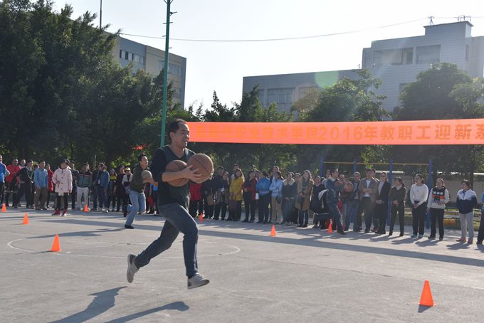 12月27日下午,我院2016年教职工迎新系列健身活动在学院文体广场举行,来自各系部各单位的8支代表队参加了此次活动。此次活动设抱球接力、抢种抢收接力、赶“猪”接力等比赛项目。