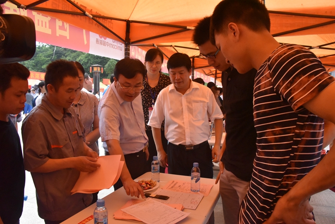 当天,市委副书记、统战部部长唐标文,市委常委、组织部部长马南萍,市人民政府党组成员、副市长李凤云等与会领导还现场参观了河池市“党建+教育扶贫”就业招聘会,现场了解企业招聘和学员应聘情况。