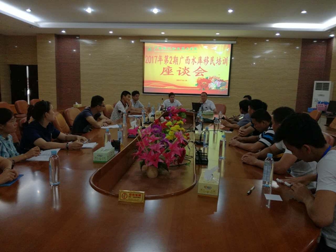 本次培训采用专家授课,师生座谈、知识讲座等形式,全面提高水库移民的专业素质和就业技能。在原有课程的设置安排下,6月16日,培训部组织全体学员开展体育活动,丰富学员的课余生活。6月19日,组织学员代表召开座谈会,听取大家对培训的意见和建议。培训部还组织学员参加河池市政府举办的2017年安全生产宣传咨询日活动,提高学员的安全意识。
