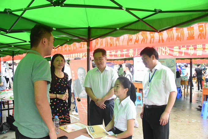 6月27日上午,我院隆重举行2014级、2015级毕业生校园双选会。副市长顾楠洲出席双选会启动仪式。学院党委书记韦伟松、共青团河池市委、市人社局领导以及企业代表等参加启动仪式。