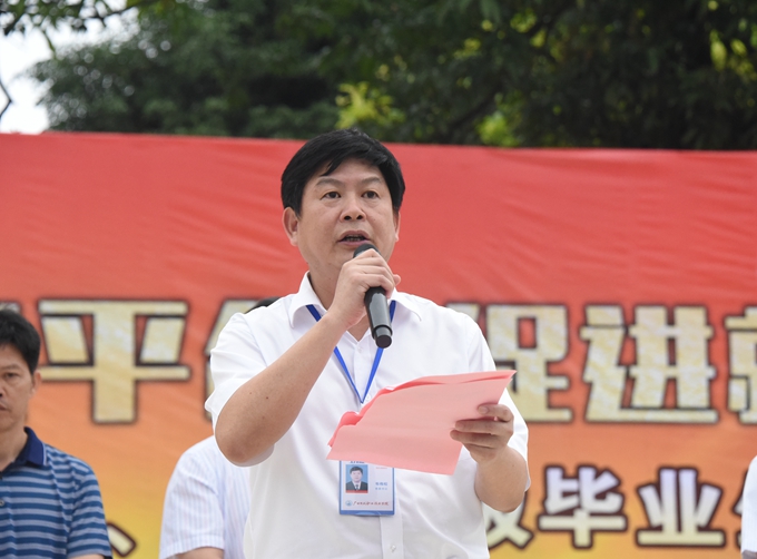 学院党委书记韦伟松在仪式上讲话。韦伟松指出,一直以来,学院高度重视就业服务工作,一方面积极做好本院的就业工作,先后与多家实力较强的企业紧密合作,构建就业平台,提供对口优质就业信息。学院毕业生一次性就业率达到90%以上;学生就业满意度连续4 年超过88%;2014至2016年,学院连续荣获“全区高校就业先进工作单位”。另一方面,学院主动配合地方开展就业服务工作,每年培训农民工、库区移民等各类人员5000多人,培训考试种类达24种。韦伟松表示,学院经过多年努力,各项事业突飞猛进发展,办学实力进入全区同类院校的先进行列,所培养的学生踏实肯干、吃苦耐劳、作风过硬、专业技能扎实,受到用人单位的广泛赞誉。韦伟松强调,此次双选会对我院毕业生和其他社会求职者来说是很好的求职机遇,希望2014级、2015级毕业生把所学的知识、练就的本领、优良的作风展示出来,能找到满意的就业岗位,并在用人单位的培养下,结合大学受过的良好教育迅速成长,成为企业和社会认可,积极服务社会的接班人。