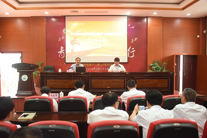 6月27日下午,市政协文教卫体委主任、市委宣讲团成员韦茂才到我院宣讲习近平总书记视察广西重要讲话精神。学院党委书记韦伟松、学院党委副书记、副院长霍江华、副院长韦胜东、纪委书记冉景峰、副院长冯忠伟出席报告会。全体教职工到场聆听宣讲报告。报告会由学院党委书记韦伟松主持。