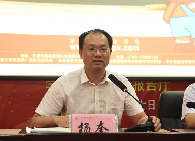 学院党委书记韦伟松在会上讲话。韦伟松对此次培训的教学水平、学习过程和考核效果给予高度评价,并指出,全体讲师团成员要坚信付出总会有收获,要保持激情,明确目标,坚持学以致用,力求体现培训实效。要在电商发展的大趋势下,积极主动,勇于担当,围绕服务地方经济发展贡献力量。