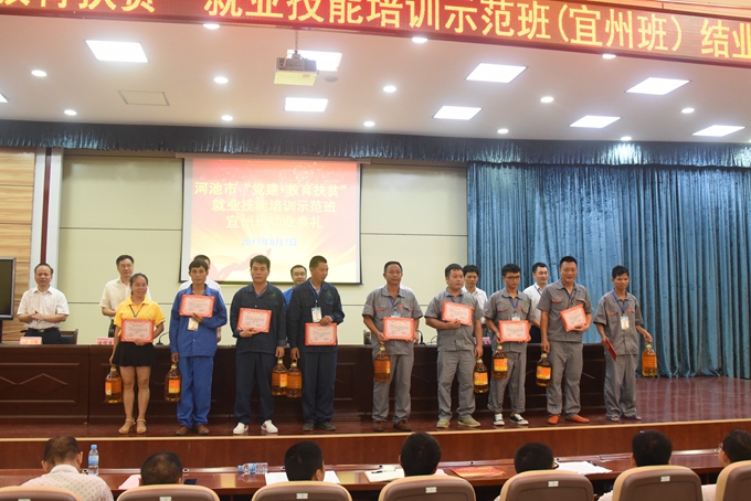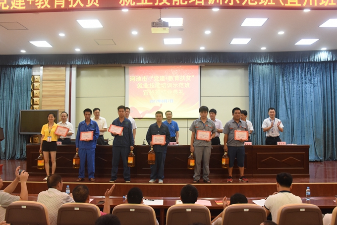 我院参加河池市“党建+教育扶贫”就业技能培训示范班(宜州班)结业典礼