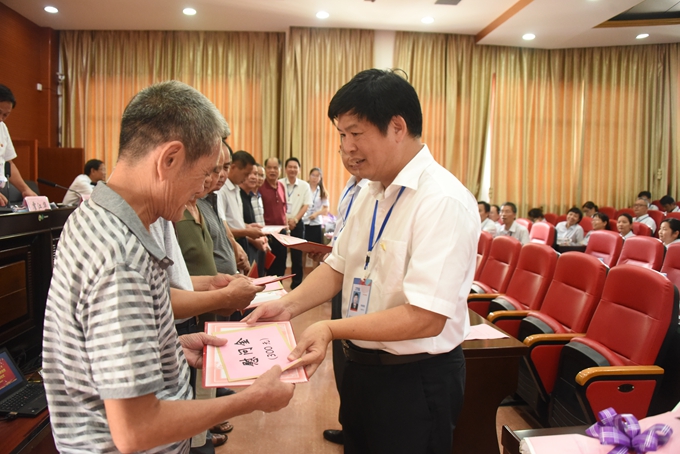 会上,副院长韦胜东宣读光荣退休教职工名单,学院党委书记韦伟松、院长黄绍光为光荣退休的教职工颁发荣誉证书,献上鲜花和祝福。