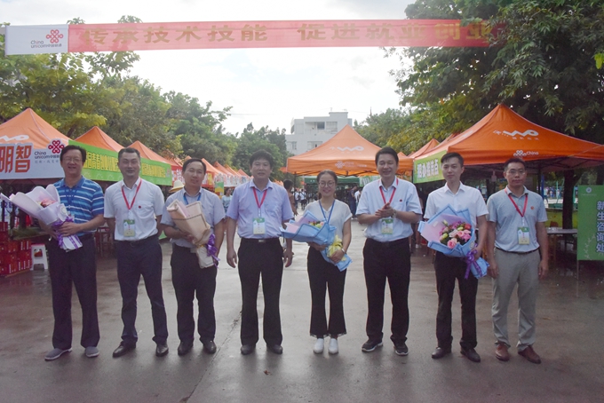 院长黄绍光,党委副书记、副院长霍江华,副院长韦胜东与新生合影