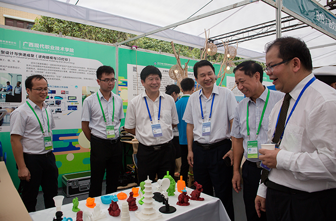 9月11日-12日,中国—东盟职业教育学生技术技能展暨百校推介会在南宁•中关村创新示范基地展出,我院有色冶金技术专业、工业产品逆向造型设计与快速成型(逆向建模与3D打印)、壮族蚂拐歌三个项目参加展示。展演期间,我院党委书记韦伟松、院长黄绍光、副院长韦胜东和院长助理、教务处处长卢森焕亲切看望了参加展演的师生。
