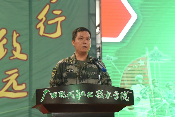 会上,南宁警备区中校郑文武讲话。郑文武强调,参加军训是落实《国防法》的要求,也是建设强大国防的客观需要,更是新生锻炼体魄、磨练意志的有效途径。他希望同学们服从命令,听从指挥,刻苦训练,精诚团结,圆满完成本次军训。